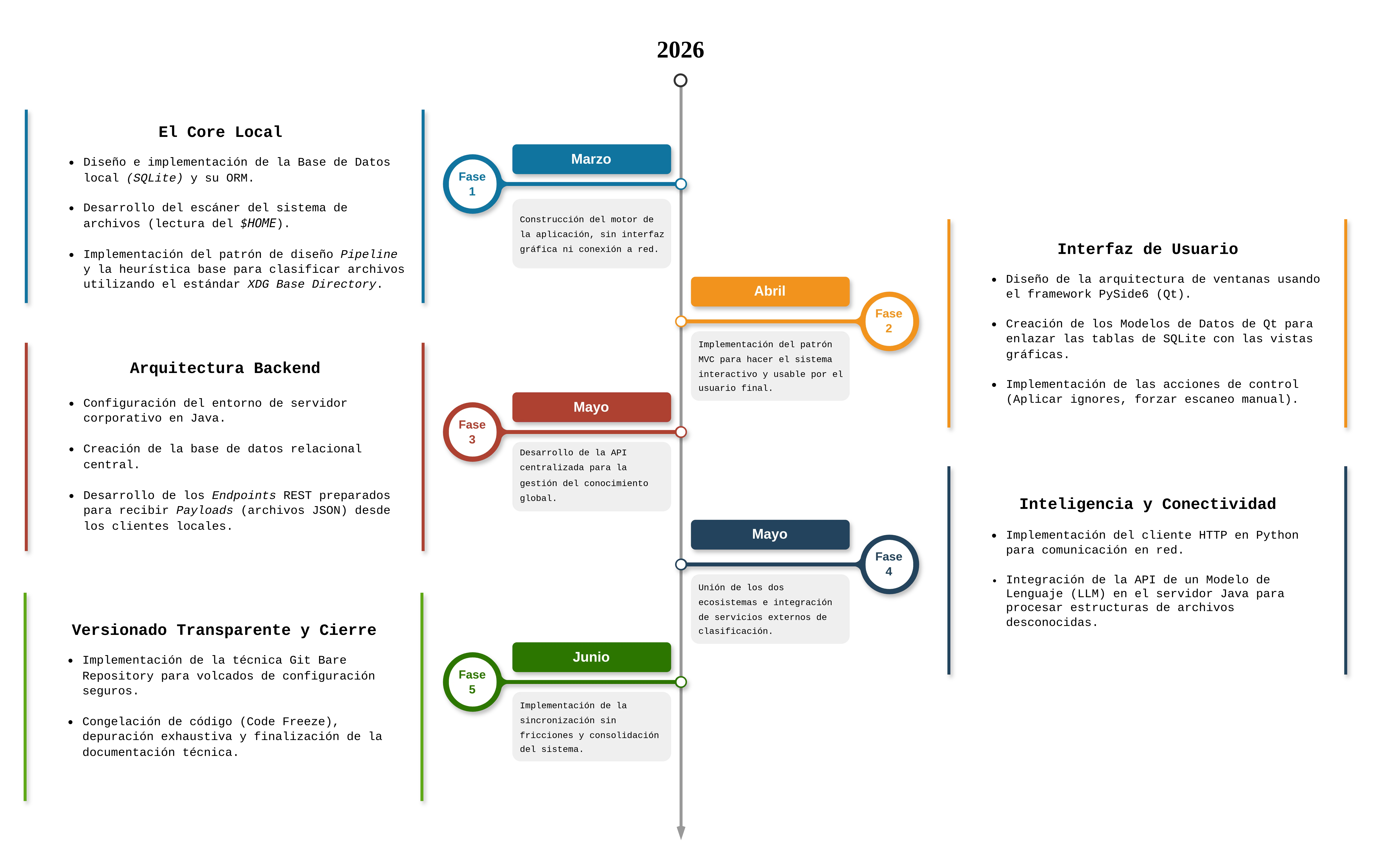 A continuación se detallan los hitos técnicos principales que componen cada una de las fases: